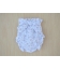 Jesusito con braguita estampada de flores en tonos rosa fresa, azules rosas y naranjas, sobres fondo beige. El cuello y los bolsillos son en cuadros vichy fresa.