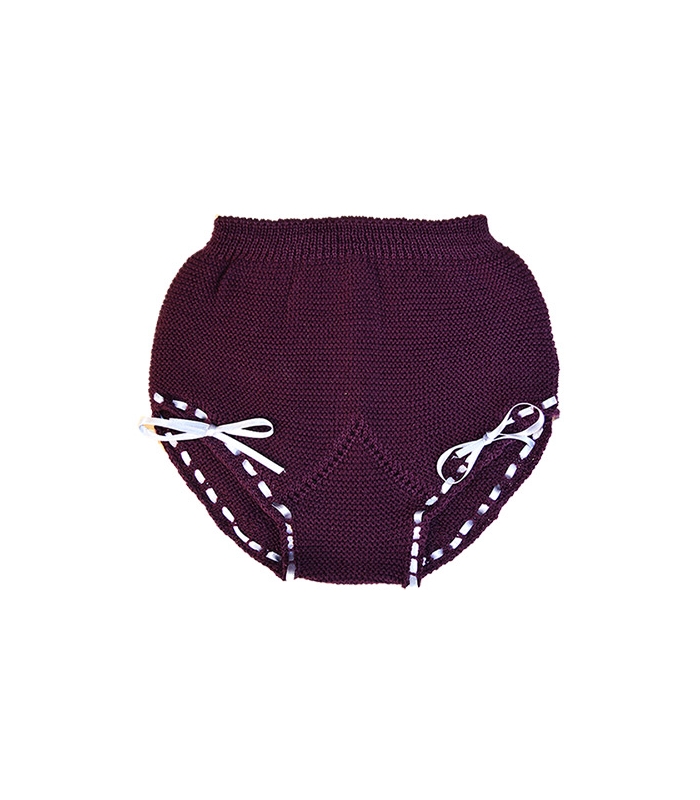 Braguitas de punto moradas con lacito gris.