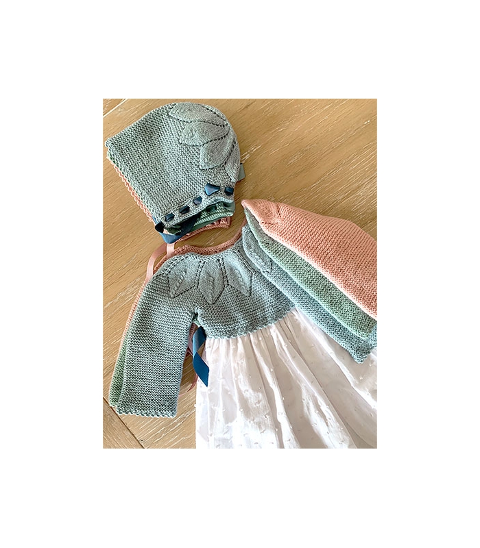 Precioso faldón para recién nacido, hecho a mano con hojas en el canesú y falda de plumeti.