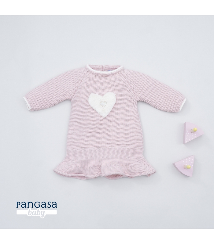 Vestido corazón de punto grueso con corazón de pelito suave en el centro.
