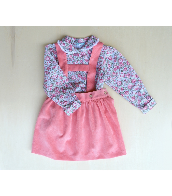 Falda con tirantes en color colorete de micropana.
